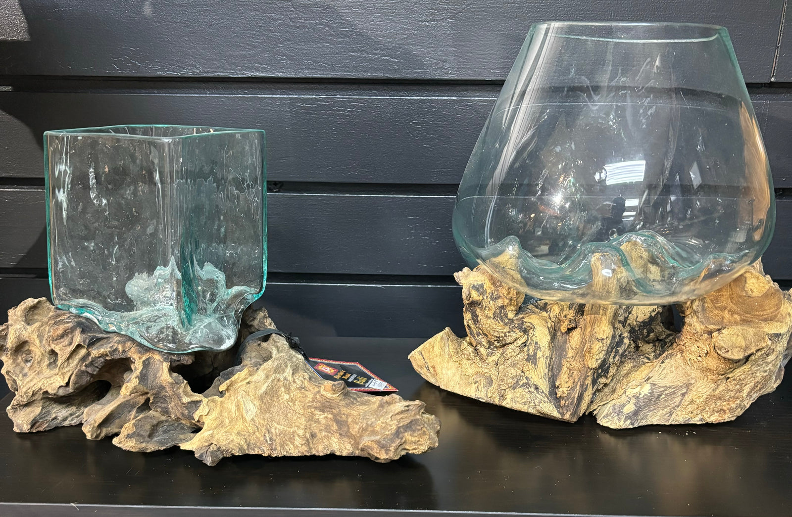 The versatility of the artists in Indonesia is unmatched. They can make stunning pieces out of wood, textile, clay, natural stone, silver, and the list goes on. Take our Gamal Root Vases, for instance. Throughout the entire year, one of our most popular items is a root from the Gamal tree that has a molten glass bowl formed to its unique shape. Of course, we are talking about our Gamal Root Vases!
