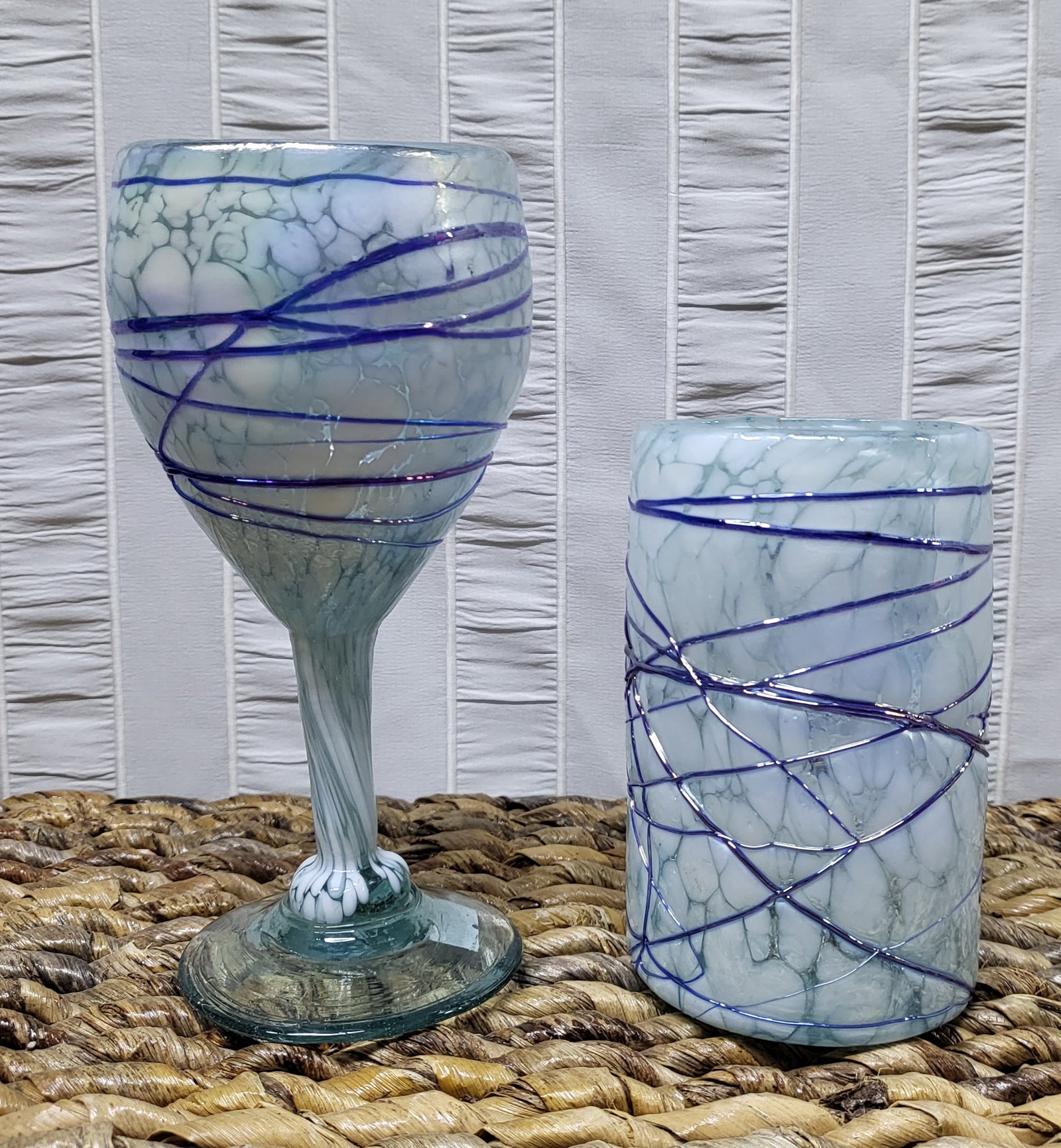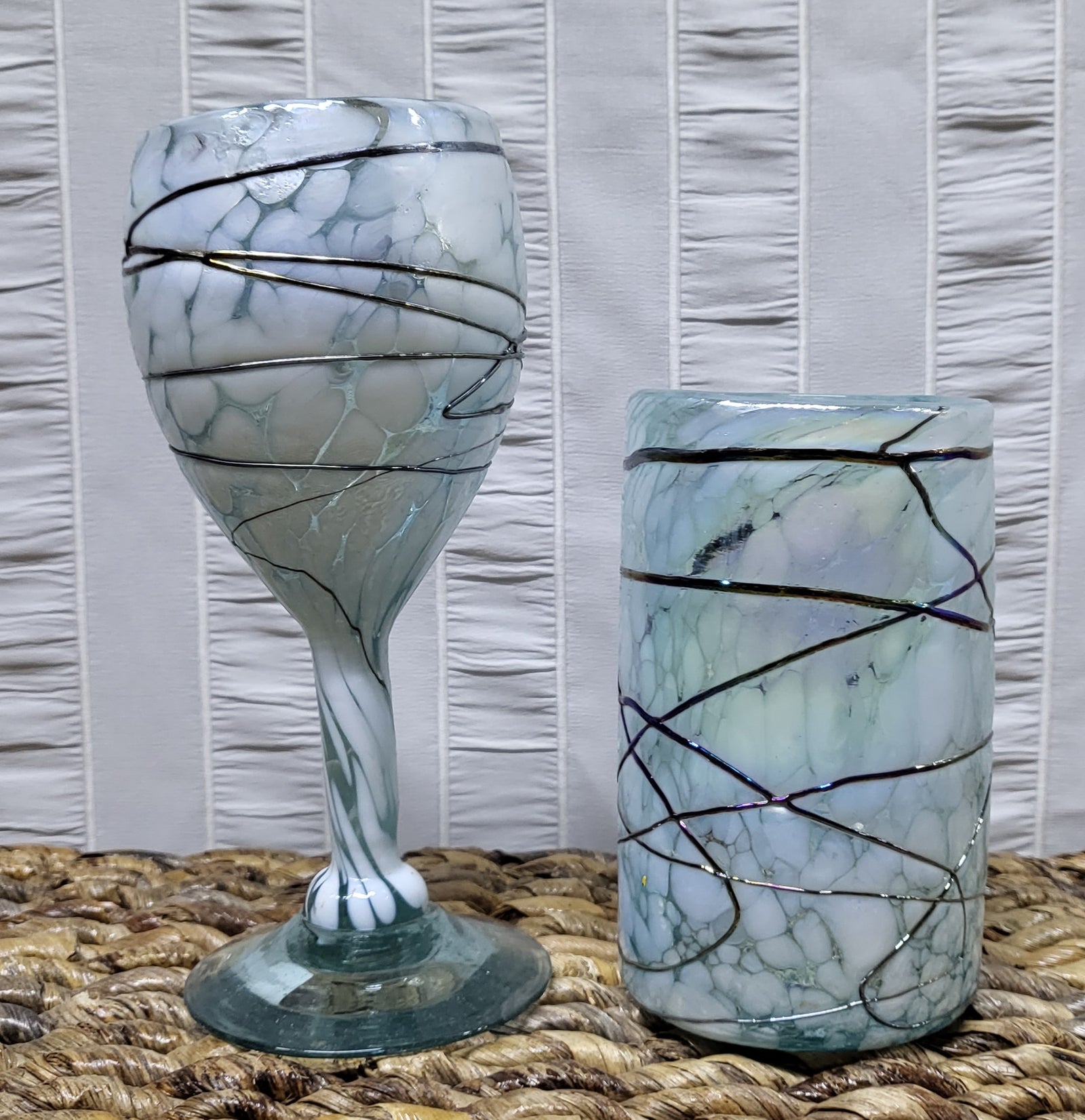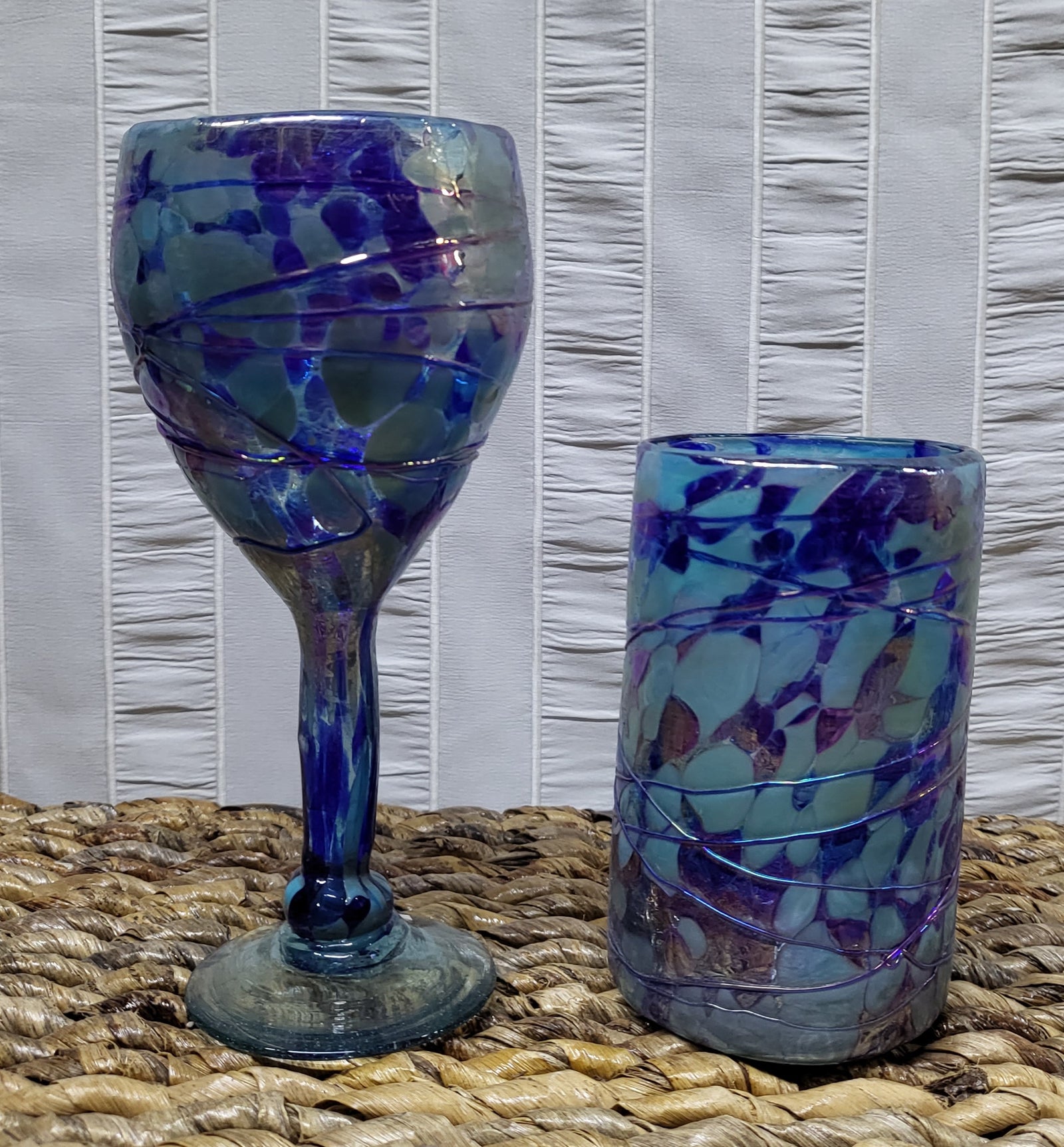 Mexican Hand Blown Wine Glasses / Iridescent Pewter