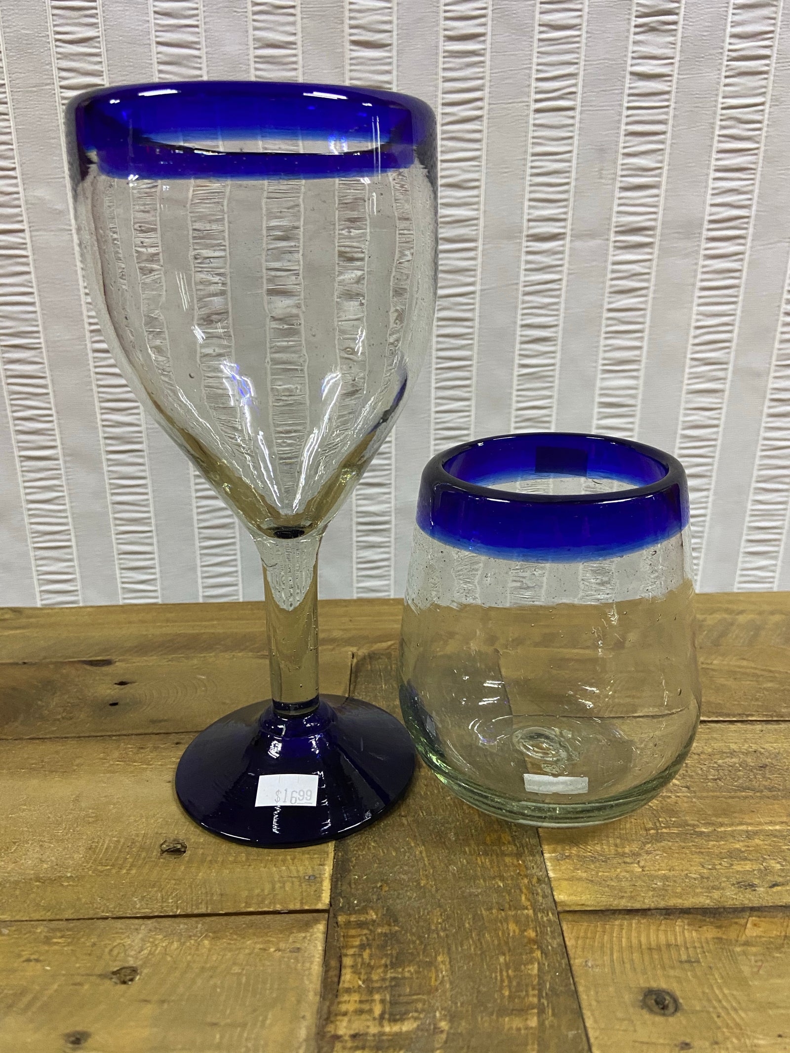 Mexican Hand Blown Wine Glasses/Blue Rim from $14.99